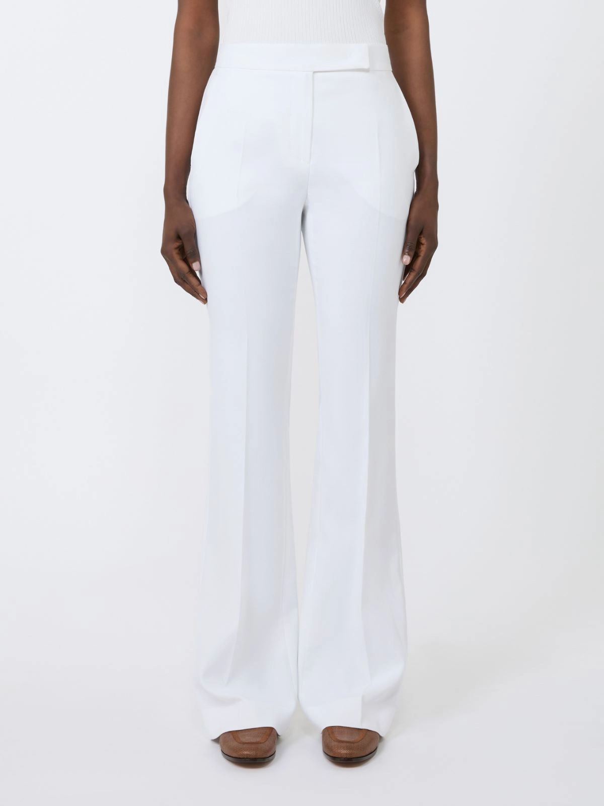 - High-cut waistband with a fly-covered zip and hook-and-bar fastening