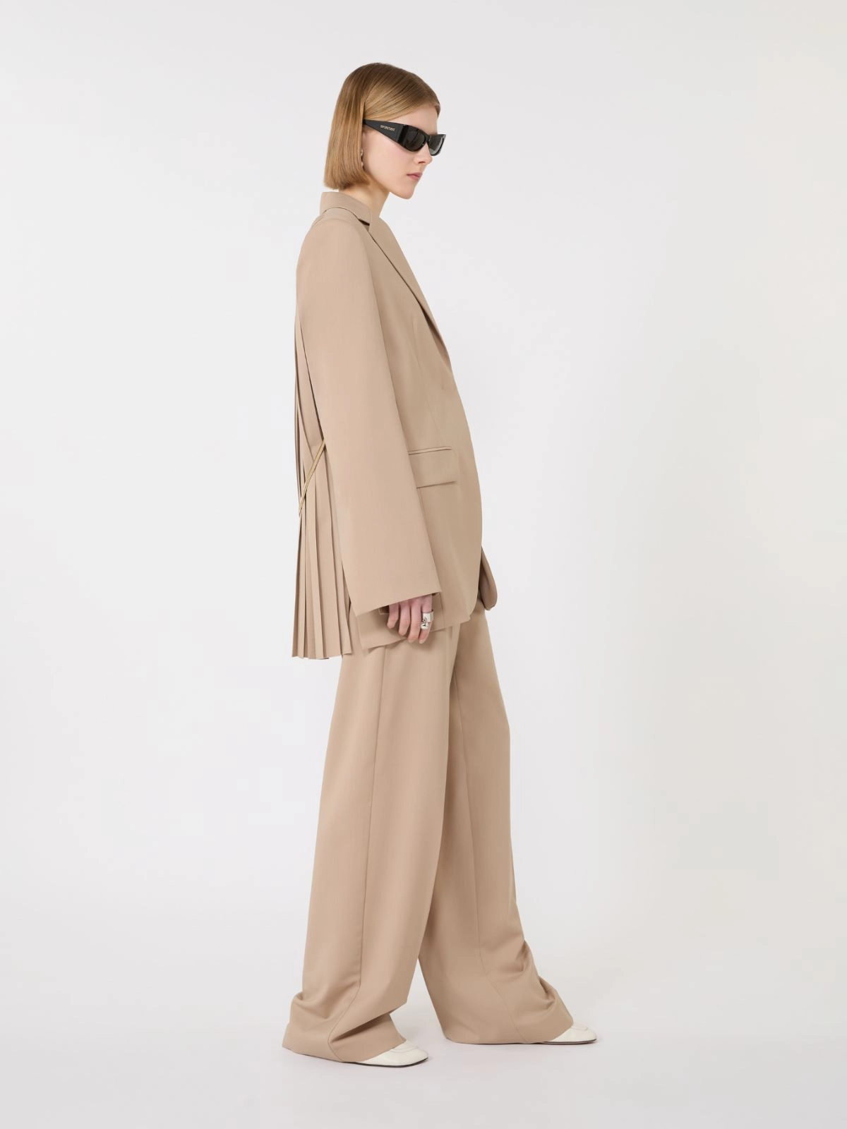 Wide-fit stretch wool gabardine trousers + BEIGE - Max Mara