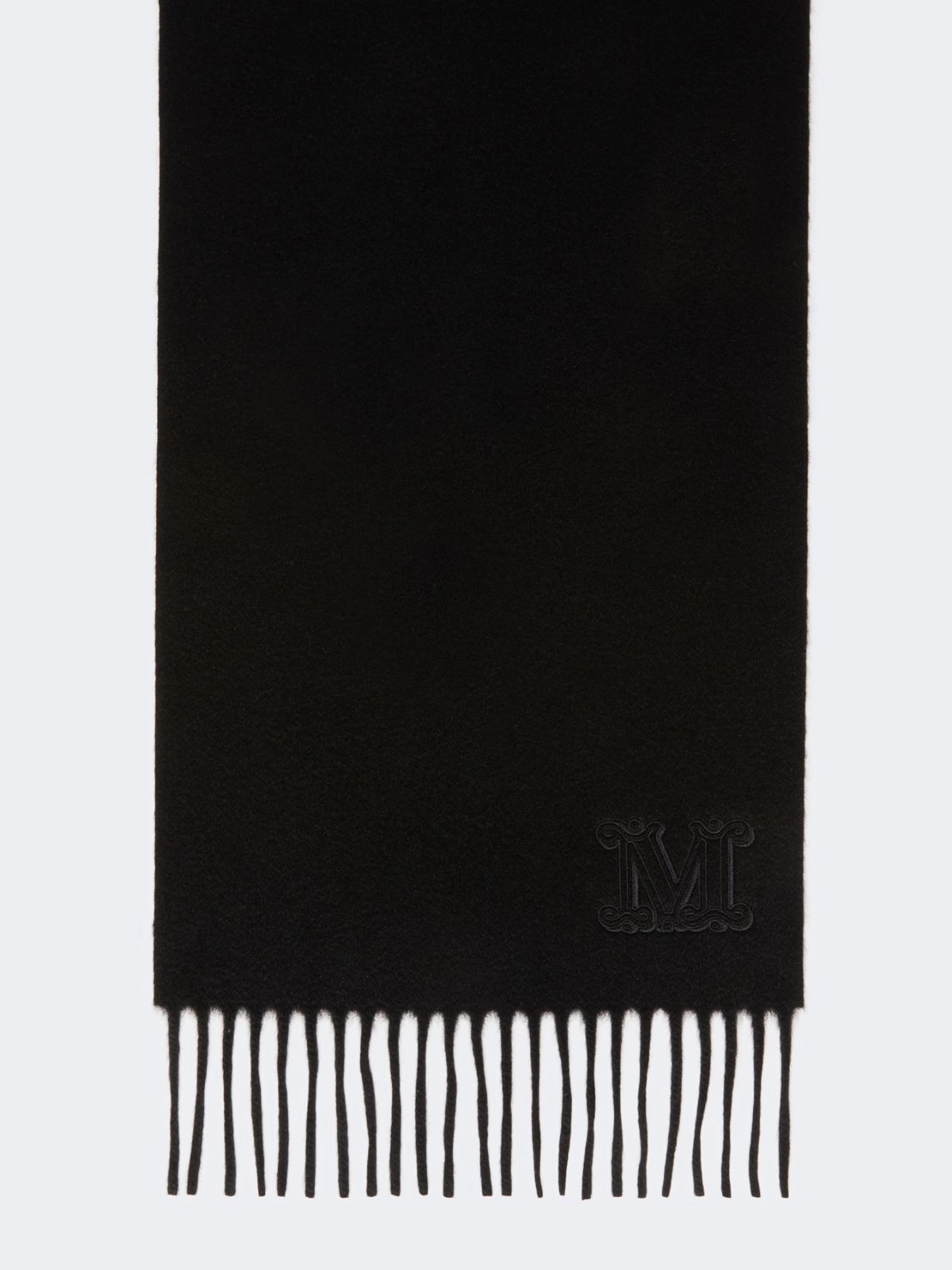 Stole with minimalist design, embellished with elegant, tonal embroidered M Monogram detail at the bottom.