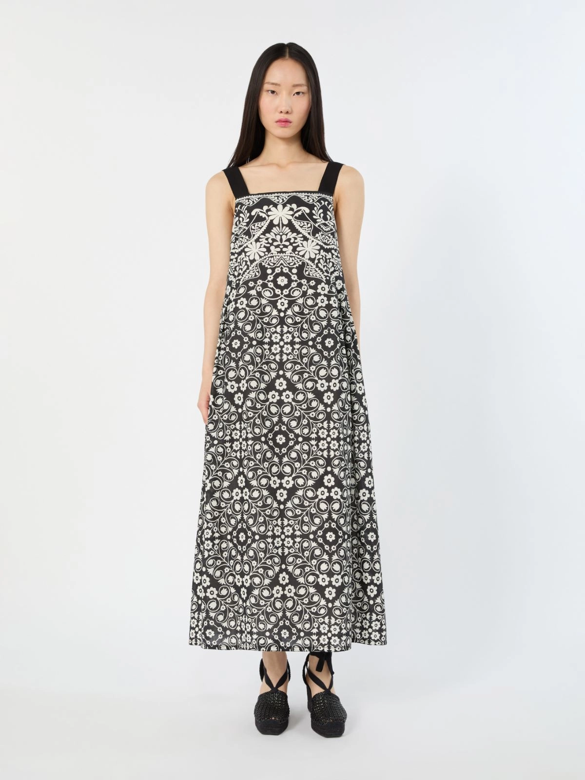 Printed cotton voile dress + BLACK - Max Mara