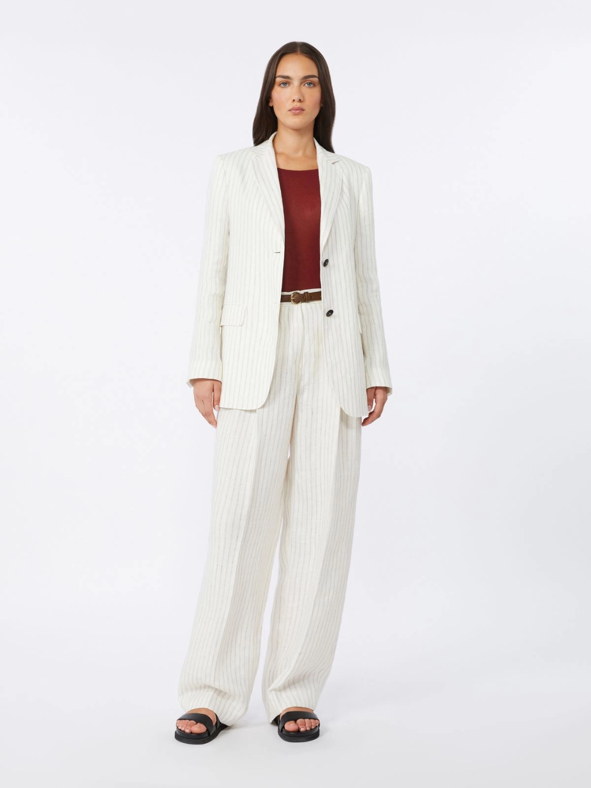 - Mottled pinstripe linen blazer