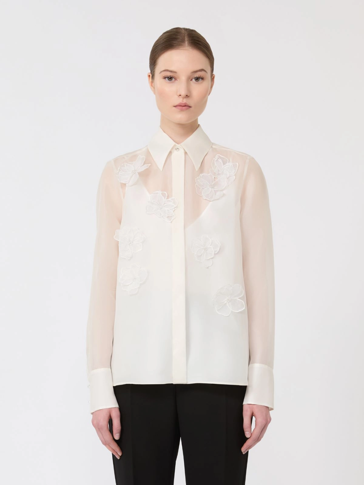 Shirt fabric 100% silk; - exclusive of decoration. Top 85% acetate, 10% silk, 5% polyamide.