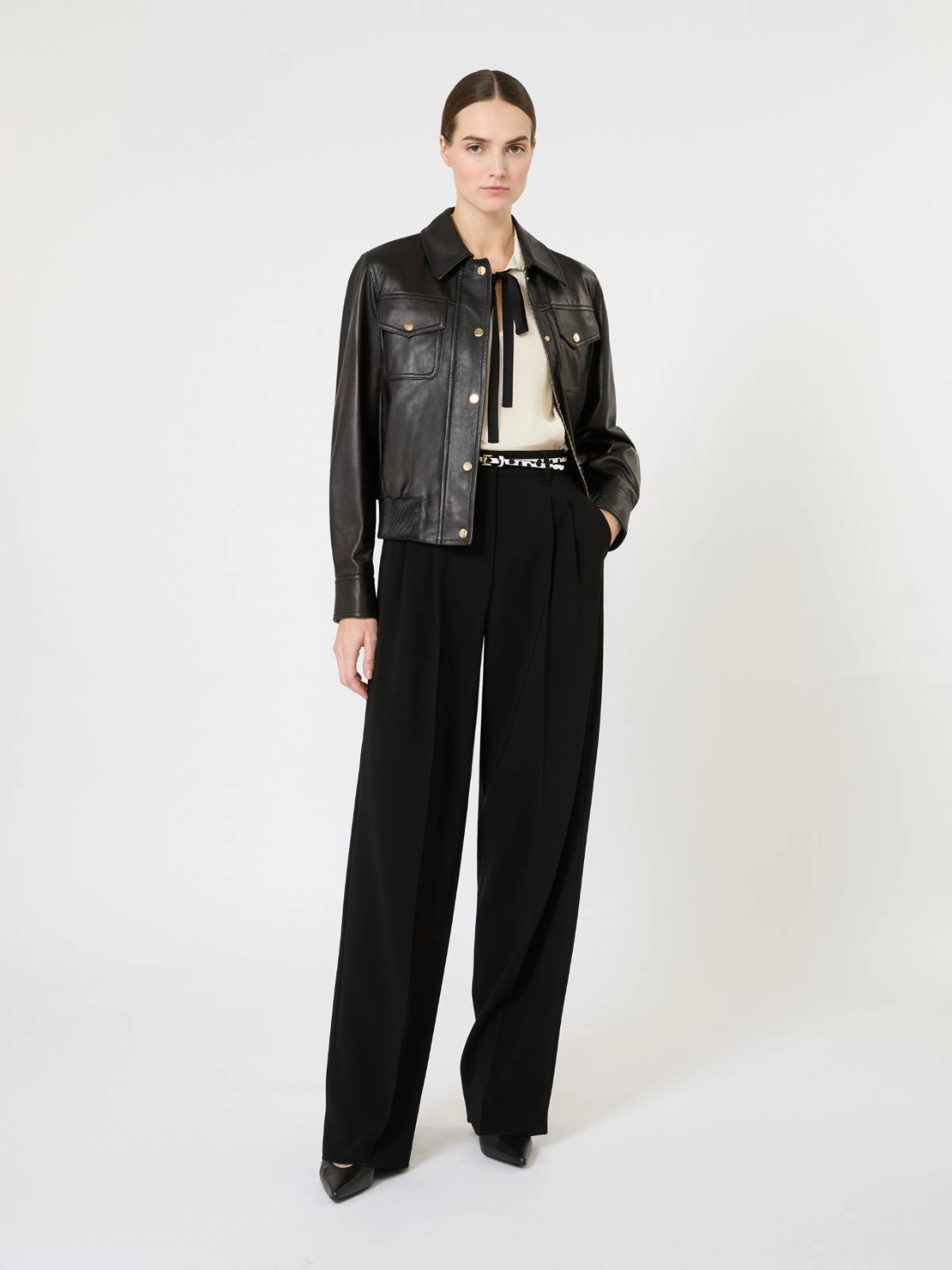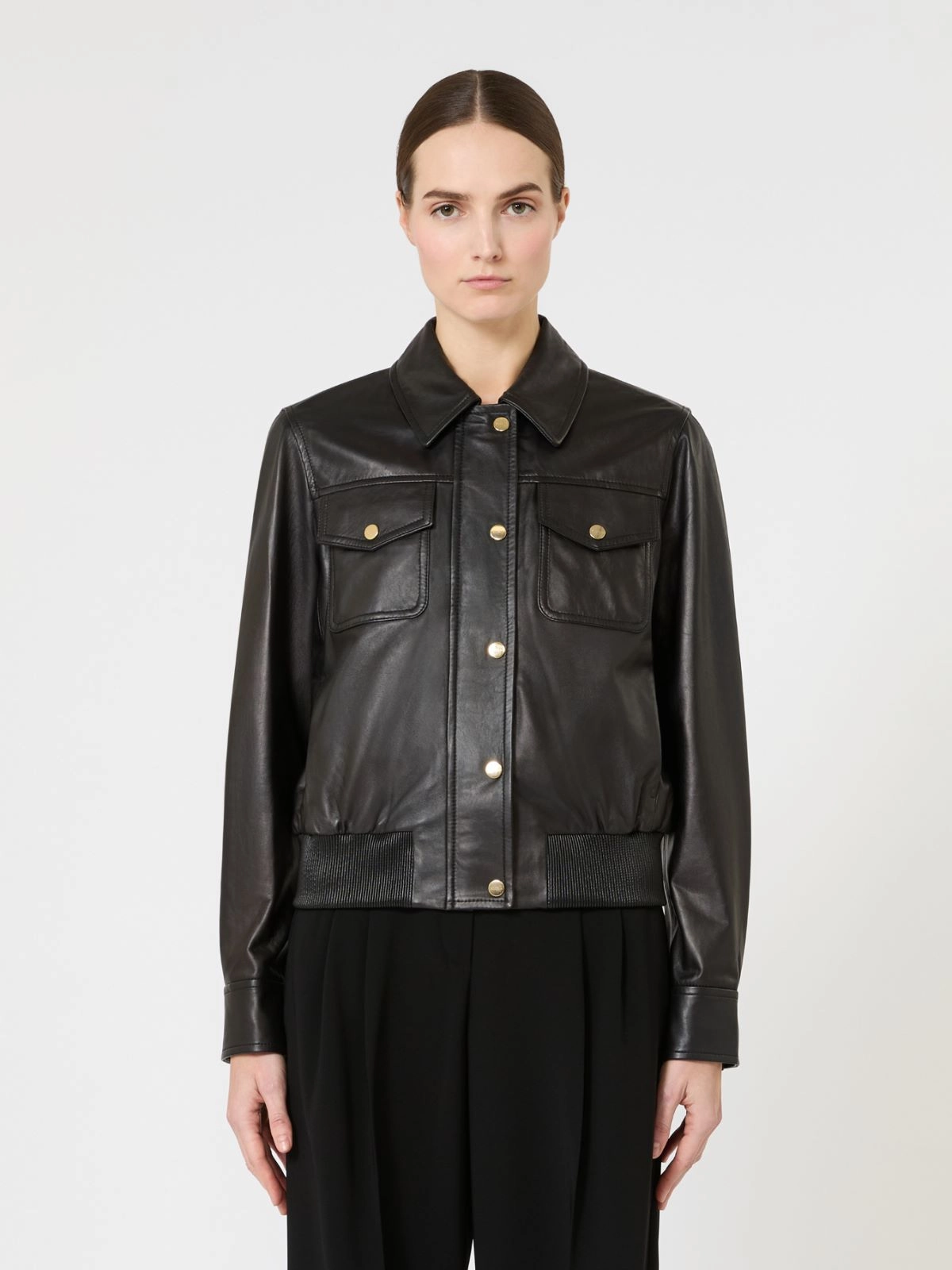 Style in lamb leather; lining in 97% polyester, 3% elastane.