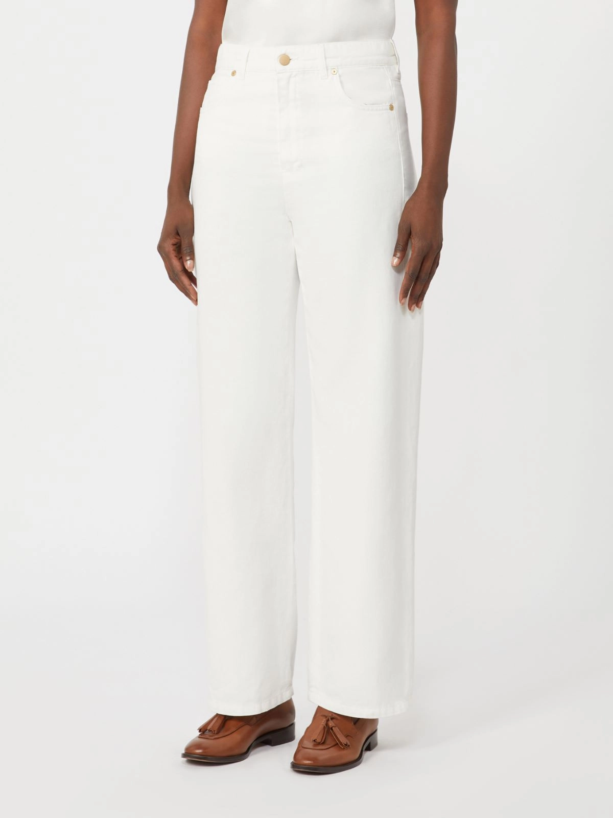 5-pocket trousers featuring metal rivets and a branded label on the back of the waist.